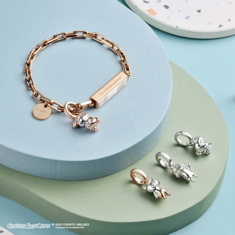 Crudo collaborates with the popular Japanese Anime series “Crayon Shinchan” to launch an officially licensed collection with the theme of “Time to Play”. Crayon Shinchan in different styles and characters has been turned into multiple 925 silver small 3D pendants for you to mix and match with our signature leather bracelet or metal gemstone bracelet.