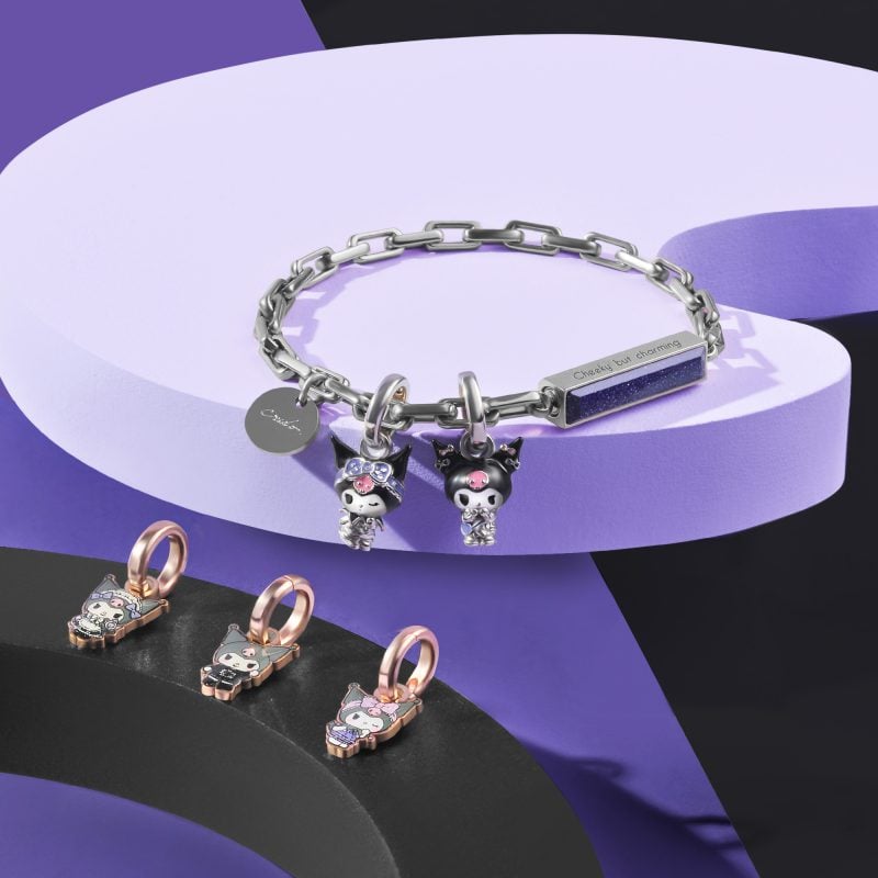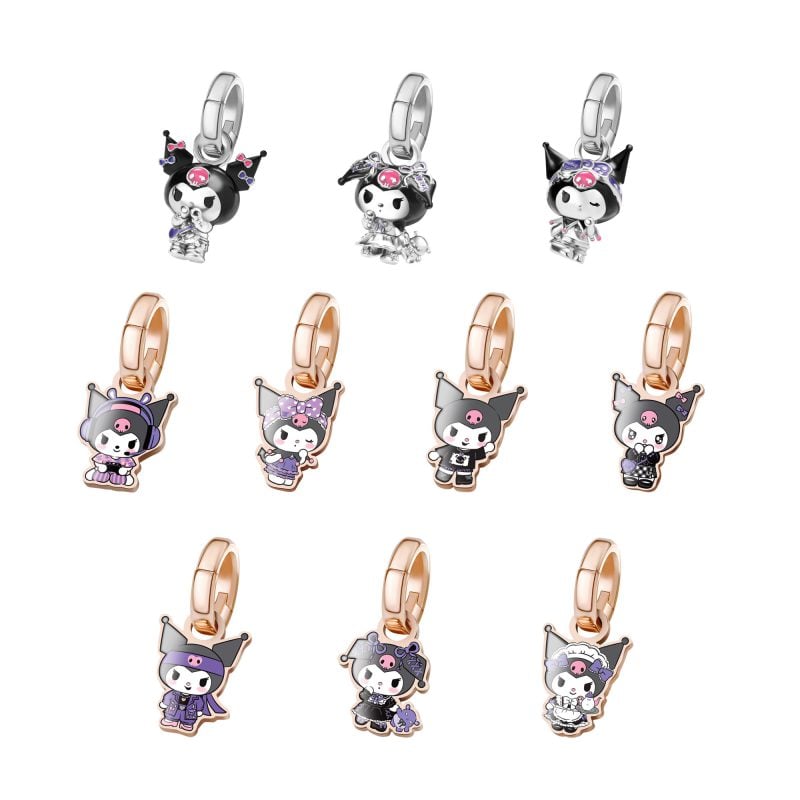 - Sanrio 官方授权产品 - 各款 Kuromi时尚造型925银立体小吊坠 - 采用925纯银配彩色珐琅 - 3D立体设计提升层次感,更精致 - 自由配搭不同组合