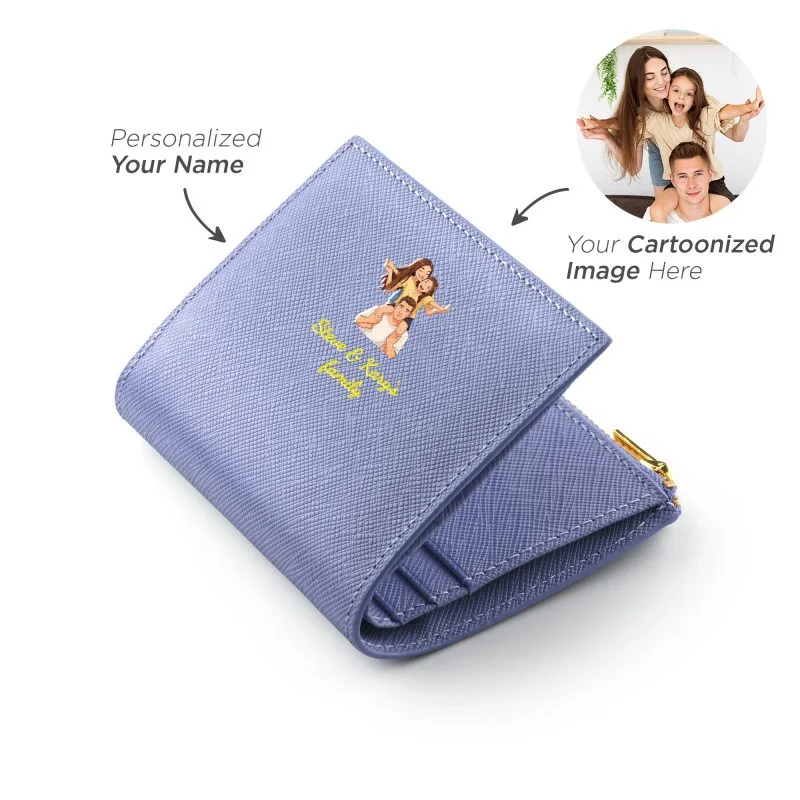 Click "ADD TO CART & DESIGN" to design your personalized engraving The Lucidato short wallet perfectly combines exquisite and unique with Saffiano leather, the delicate bi-fold design exudes a soft and elegant temperament. The spacious compartments meet your daily needs. Transform your photo into a personalized leather keepsake and create a truly one-of-a-kind accessory. Simply upload your treasured image, convert it into a cartoon illustration, and let our UV printing technology bring it to life on premium Italian full-grain leather. The artwork blends seamlessly with the leather’s texture, making it a meaningful piece — perfect for gifting or daily use. Description: - Upload your photo and transform it into a cartoon‑style illustration, embossed on leather by full‑color UV printing technology - Free upgrade to deluxe gift wrapping (gift card and product warranty card included) - Various font choices - Hand-burnished and beveled edges - Made of Italian first-grain Saffiano leather - We respect intellectual property rights. Orders may be cancelled if the uploaded design appears to infringe any copyrights or unauthorized materials Features: - 6 credit card slots - 1 secure and zipped coin pocket - 1 compartment for banknotes Production and Shipping Details - Orders will be processed within 1-5 working days - Products can be shipped out the next day - International Shipping