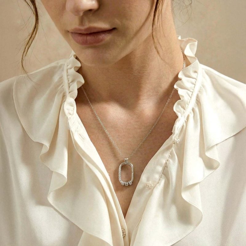 这款优雅的项链精准诠释了无可取代的亲情羁绊。以高品质925纯银精心锻造,闪耀的吊坠低调而奢华,完美衬托出母亲历经岁月沉淀的从容与温婉气质,适合她日常优雅佩戴。