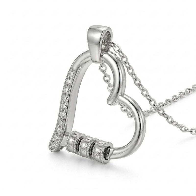 项链配有可灵活滑动的纯银小圆环,并提供专属的客制化刻字服务。您可以自由加配圆环数量,将子女的名字温柔镌刻其上,让这份最骄傲的爱意时刻贴近她的心房。