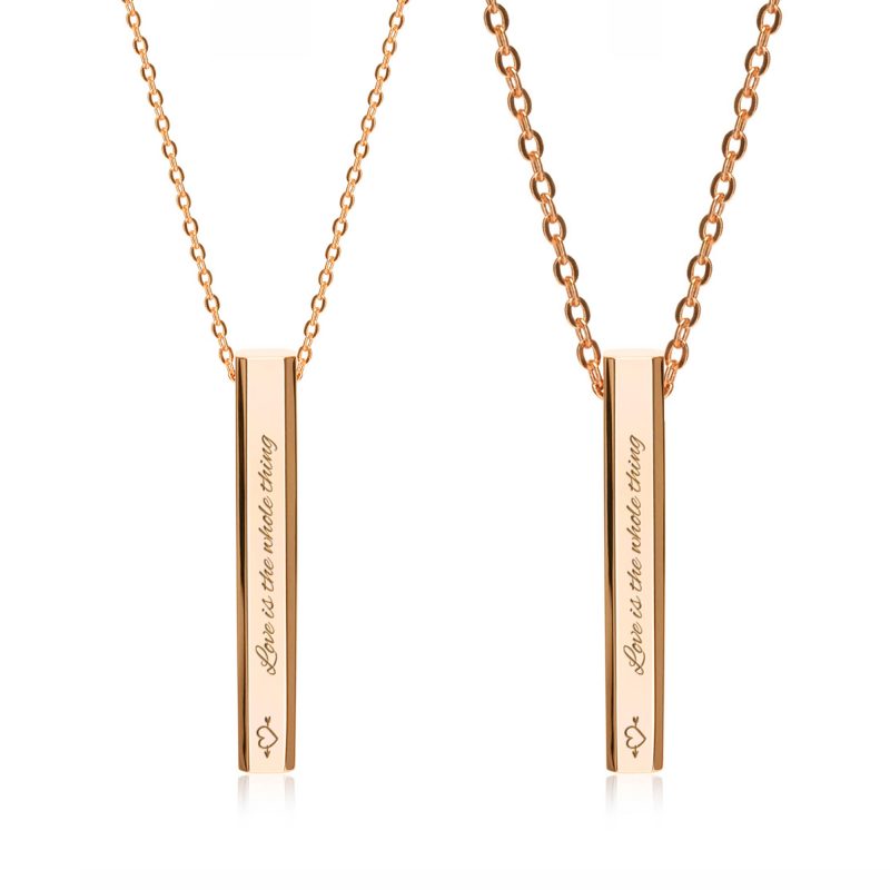 Tell your infinite love story with one single piece. Breaking gender boundaries, the Puro Bar Customized Necklace uses sleek, bold lines to redefine minimalist fashion. Featuring personalization with meticulous laser engraving on all 4 sides, it’s the ultimate matching set. Wear each other's name and shared dates. Give the most unique, personal gift for the next special occasion. Description: - Multiple fonts, emojis and engraving ideas for you to choose from - Free upgrade to deluxe gift wrapping (gift card and product warranty card included)  - Free personalized text and emoji engraving - Use of 316L polished stainless steel - Exclusive octagon-edged design - Handcrafted by experienced craftsmen Production and Shipping Details - Orders will be processed within 1-5 working days - Products can be shipped out the next day - Free International Shipping