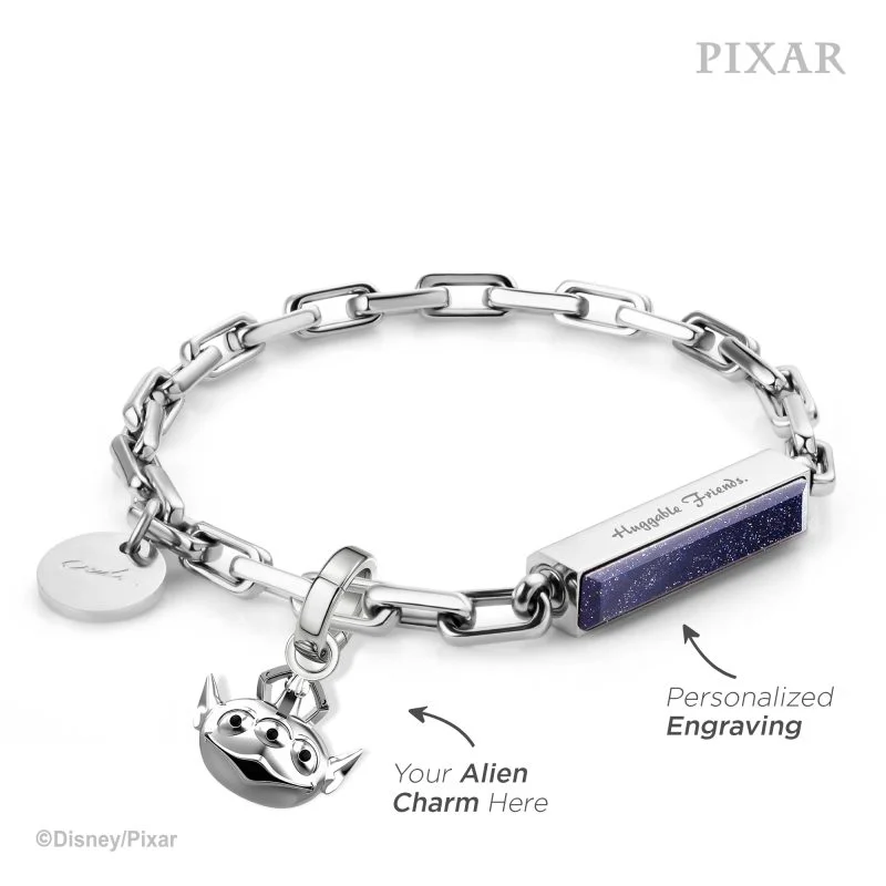 ** Please select at least one Alien Special Edition Small Metal Plate, otherwise the bracelet will only come with the original small metal plate and the Alien deluxe gift box would not be included ** Alien Special Edition “The Clawwwwww!” Aliens have been chosen! The Alien Special Edition features five charm designs in 925 sterling silver or colorful enamel, inspired by the thrill of the claw machine's winning moment. Click "ADD TO CART & DESIGN" to design your personalized engraving - Disney officially licensed product - Can mix and match with multiple charms inspired by Alien onto the leather bracelet - Upon purchase of Alien special edition accessories, you can enjoy a Alien deluxe gift box with a detachable greeting card (gift card and product warranty card included) - Exclusive octagon edge bar combines with a specially designed stainless steel box chain - Blue Goldstone added healing essence to the metal bracelet, making a subtle yet delicate go-to accessory - Every gemstone is well polished and shimmering in its own way - Extracted from the natural environment, every gemstone has its unique natural pattern - Free engraving service with multiple fonts, and engraving ideas for you to choose from - Avoid color fading and oxidant, highly durable - Suitable for sensitive skin types - Exclusive octagon edged design - Magnetic fastening Production and Shipping Details - Orders will be completed within 1-5 working days - Products can be shipped out the next day - Fast Shipping to Hong Kong & Macau
