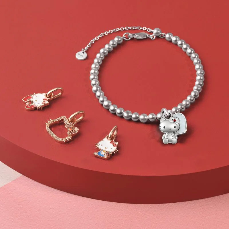 人気のハローキティのクラシックで可愛いデザインをメタルまたは純銀のチャームに仕立てました。一部のチャームにはラインストーンが施され、上質で軽やかなラグジュアリー感を演出します。Crudoの各種ブレスレットと自由に組み合わせて、時代を超えて愛用できるあなただけの日常アクセサリーをお楽しみください。