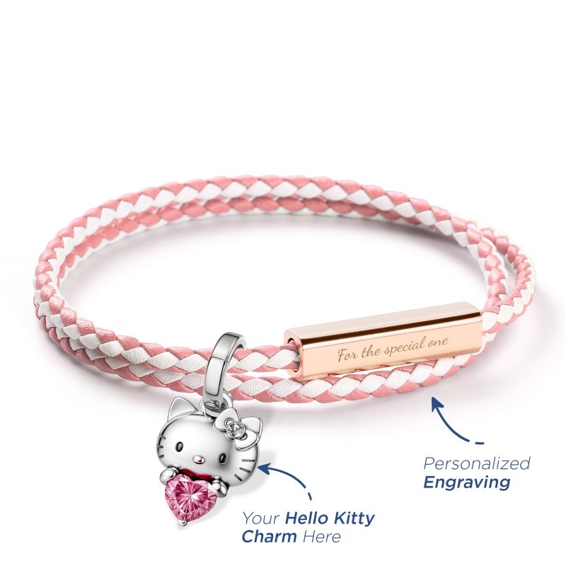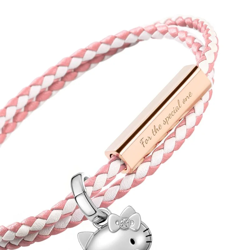 Enjoy a free engraving service by Crudo, mark your favorite quote and your signature on the bracelet to make your one-of-a-kind Hello Kitty accessory.