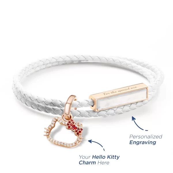 Enjoy a free engraving service by Crudo, mark your favorite quote and your signature on the bracelet to make your one-of-a-kind Hello Kitty accessory.