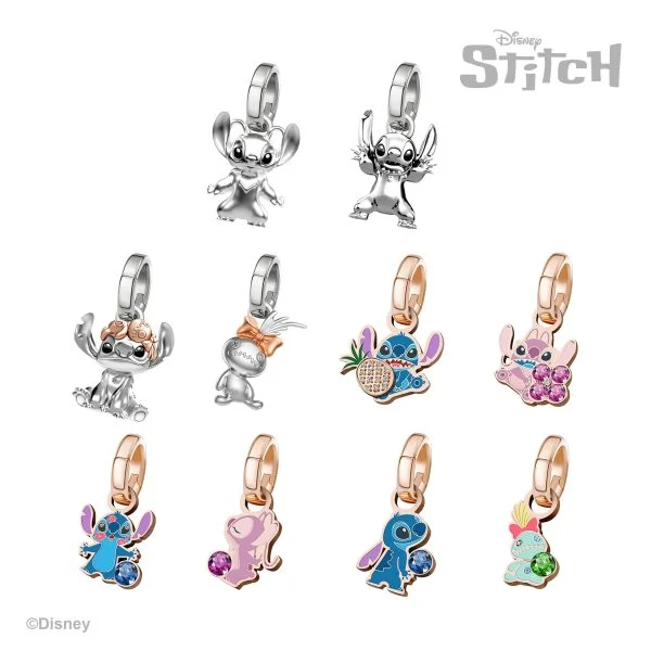 史迪仔 (Stitch)、天使 (Angel) 與小甘 (Scrump) 為你的夏日帶來動感與樂趣!6 款金屬閃石小吊牌展現夏威夷的熱情與魅力,為你換上夏日新裝。